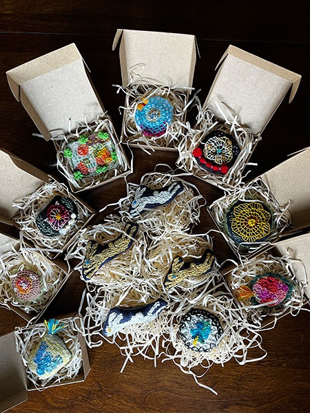 それで!クリスマス前のマーケットなんだし、ひとつひとつ小箱に入れたら「ストッキングスタッファー(クリスマスの靴下に詰める小さな贈りもの)」っぽくなるかなぁと思って。