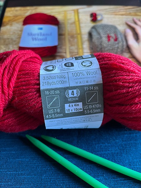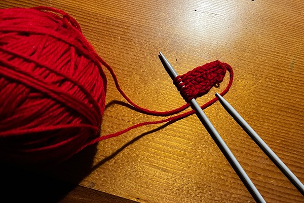 赤の毛糸、冬らしくていいですね。