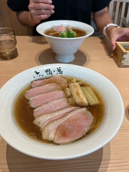 懐かしい友だち(20歳のとき?にカナダで知り合った。すごーい)とランチ↓↓ 「鴨と葱」というラーメンのお店。これも大阪。このお店に行き着くまでにかなり迷った。笑 書いたっけ? 大阪梅田のような大きな街では、Google Mapを利用してもあまり参考にならないという話。「200m先の信号をわたって北西に。。。」と言われても、ビルの谷間ではどっちが北西なんだかさっぱりわからーん!という具合で、同じところをぐるぐる歩き回り、暑いもんだから花壇のフチに座って休憩してしまったほど。苦笑。