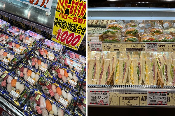 外食ではないけれど、↓↓この価格でお寿司やサンドイッチがあるなんてーっ。