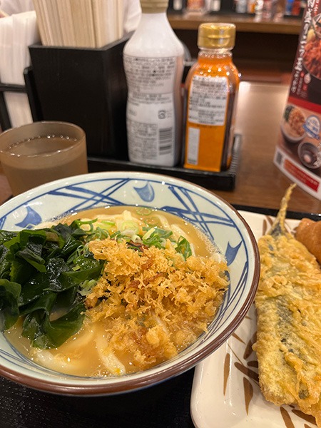 回転が早い、安い、美味しい、うどん。というので、帰国のときにいつも行くのが「丸亀製麺」。笑