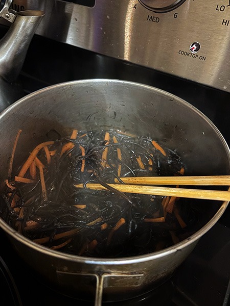 お揚げさんもこんにゃくもないけれど、どっちゃりとひじきと人参。