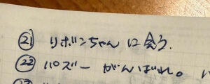 思い出したとき・思いついたときにメモ帳に「すること・したいこと」を書き留めるように心がけている。最近はそうしておかないと、すこーんっと抜け落ちて忘れてしまうから。今、ちらっとノートを見ても「あ、そうだそうだ、コレをしようと思っていたんだった!」と、今聞かされたような気分で思い出す。