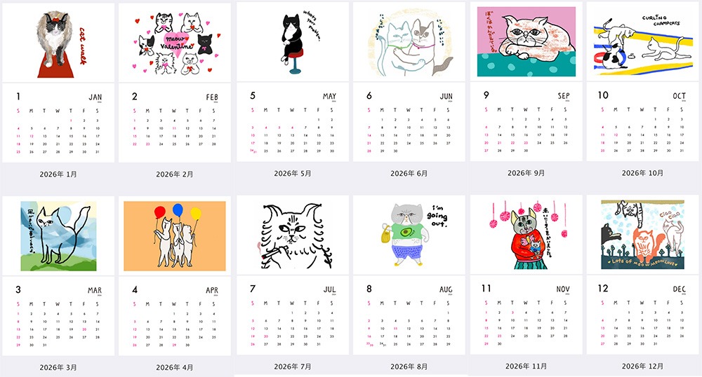 2026年のカレンダー「Meow Meow ニャンズ」を販売します☆